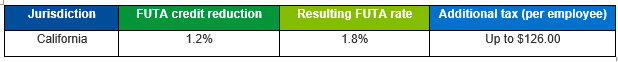If you are an employer with a work location in California, you may be subject to an additional federal unemployment tax for 2025.