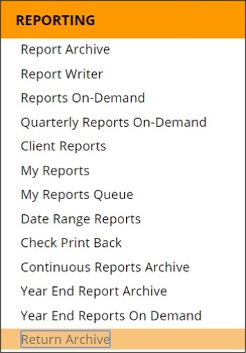 Fourth quarter and annual tax filings will be available on the Return Archive page of the Reporting menu in isolved on Feb. 1, 2022, as referenced in the screenshot(s) below.
