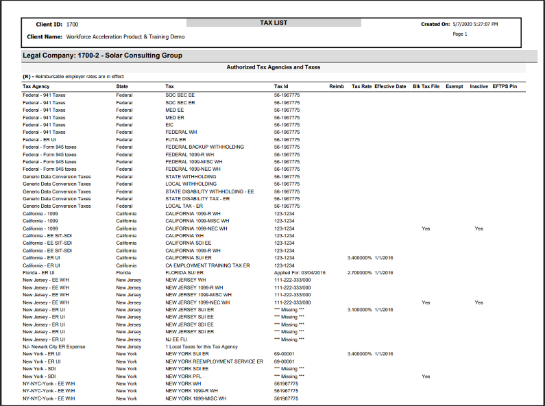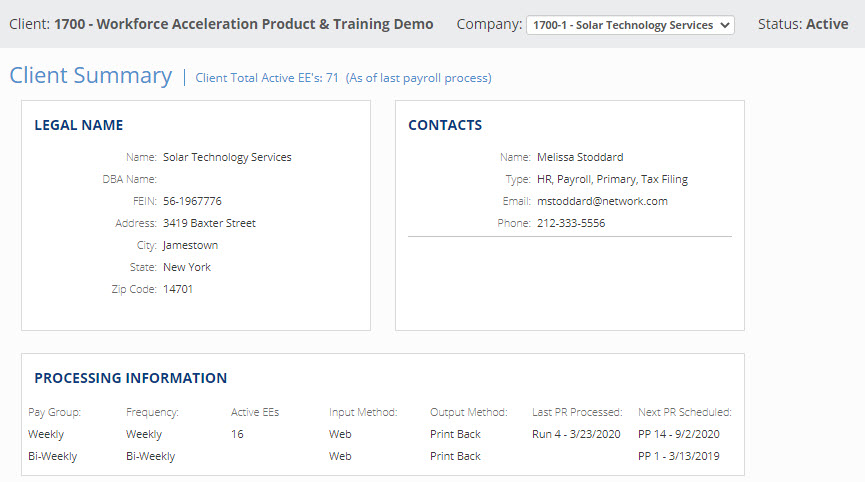 It is crucial to confirm that your tax setup is accurate and complete. We recommend that you go to Client Management > Client Summary to validate each of the statements included in the following sections.