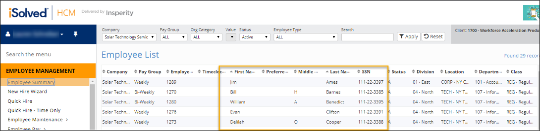 Go to Employee Management > Employee Summary page and review employee names and social security numbers for accuracy.