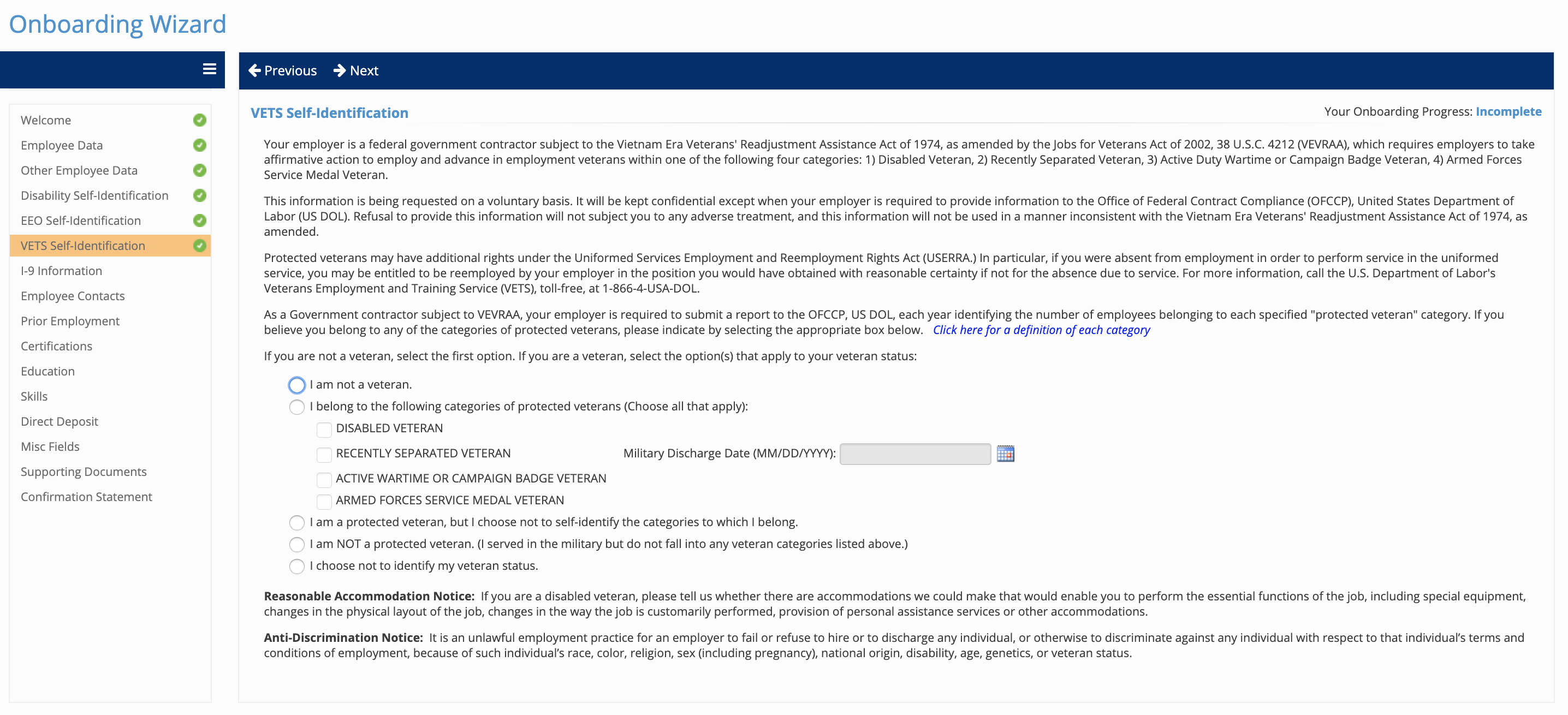 - Voluntary Self-Identification of Veterans Information