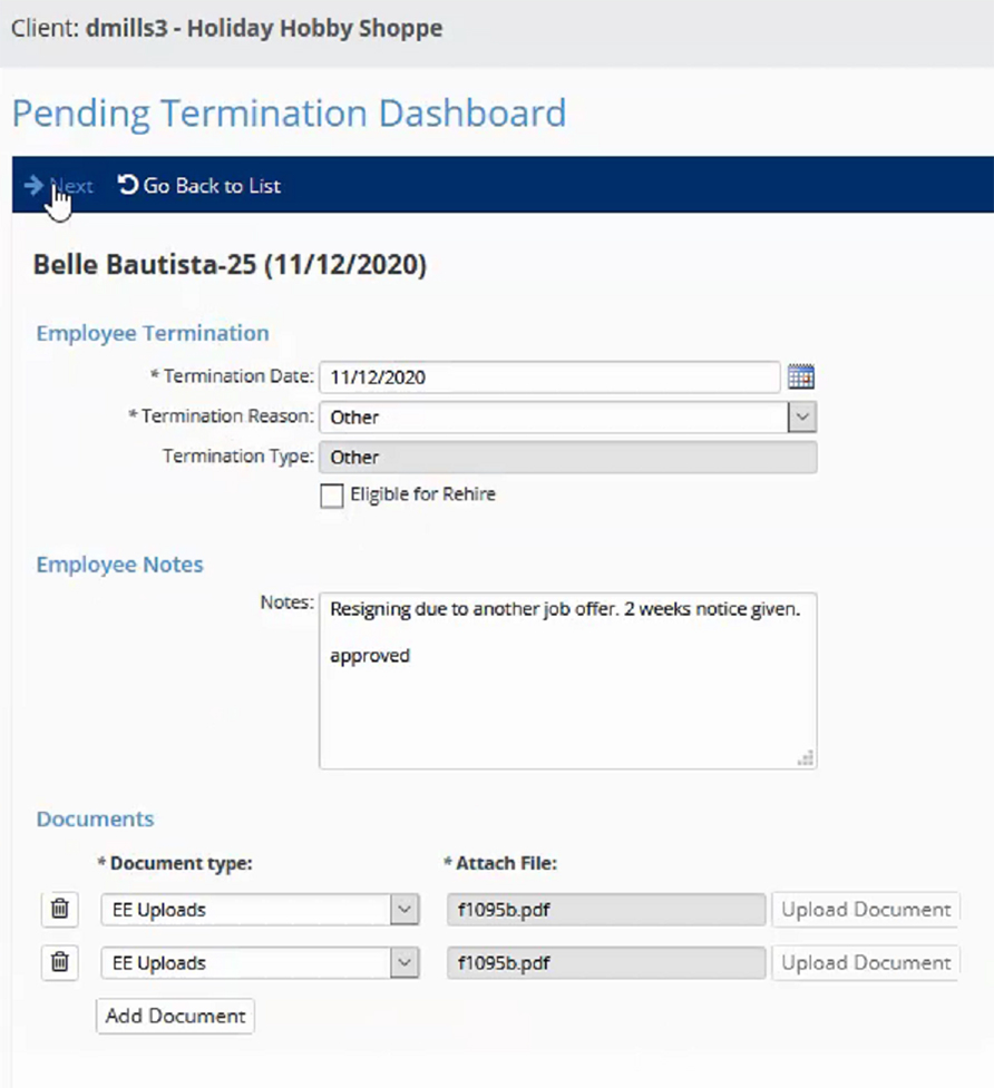 The Offboarding Wizard will allow customers to configure an offboarding process for terminating employees that allows assigned users to complete their steps in the termination process.